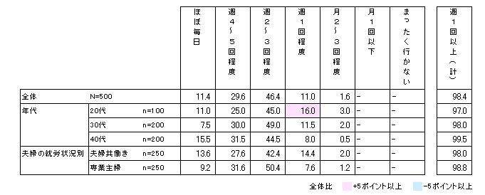■家庭の食品購入頻度 N=500