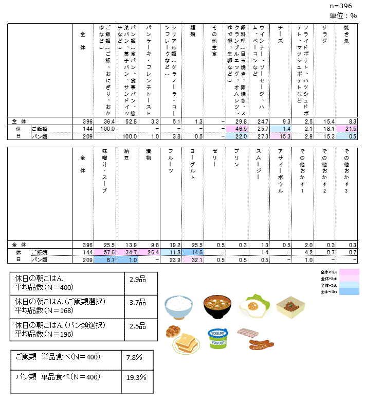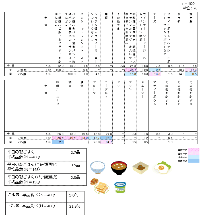 | 対象者条件 | 全国在住、20代~60代の男女、週に1回以上朝食を食べている人 |