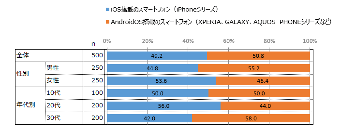 | 対象者条件 | ・全国の15~39歳男女 ・プライベートでiOSまたはAndroidOSのスマートフォンを使用している方 |