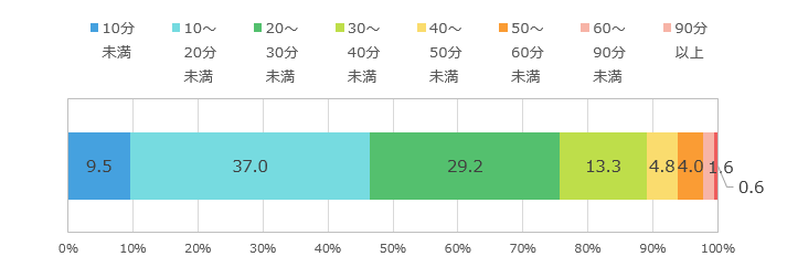 自宅でお風呂に入る人を対象に、お風呂にどれぐらいの時間をかけているか答えてもらった。「10~20分未満」が37.0%で最も多く、次いで「20~30分未満」が29.2%、「30~40分未満」が13.3%、「10分未満」が9.5%と続いた。お風呂に入る人のうち75.7%が入浴に30分以上時間をかけないという結果だ。一般的に半身浴や長風呂が好きそうなイメージのある女性も、30分以上(計)は約3割にとどまる。