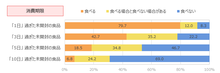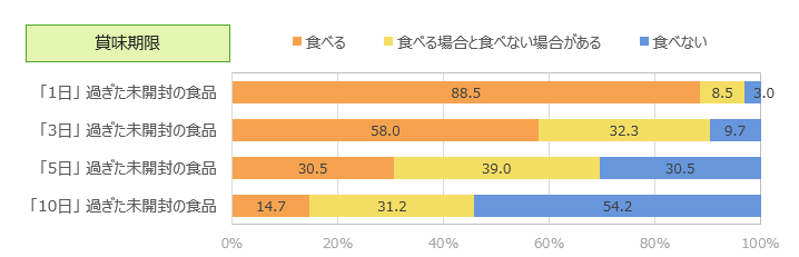 【賞味期限切れ】1日過ぎたものなら88.5%、5日なら30.5%が「食べる」