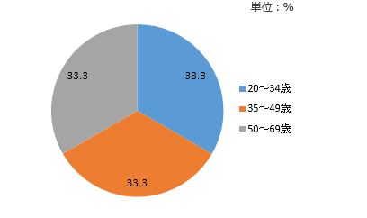 | 割付 | 【性別】男性:300ss、女性:300ss 【年代】20~34歳:200ss、35~49歳:200ss、50~69歳:200ss |