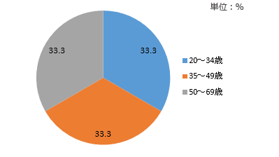 | 割付 | 【性別】男性:300ss、女性:300ss 【年代】20~34歳:200ss、35~49歳:200ss、50~69歳:200ss |
