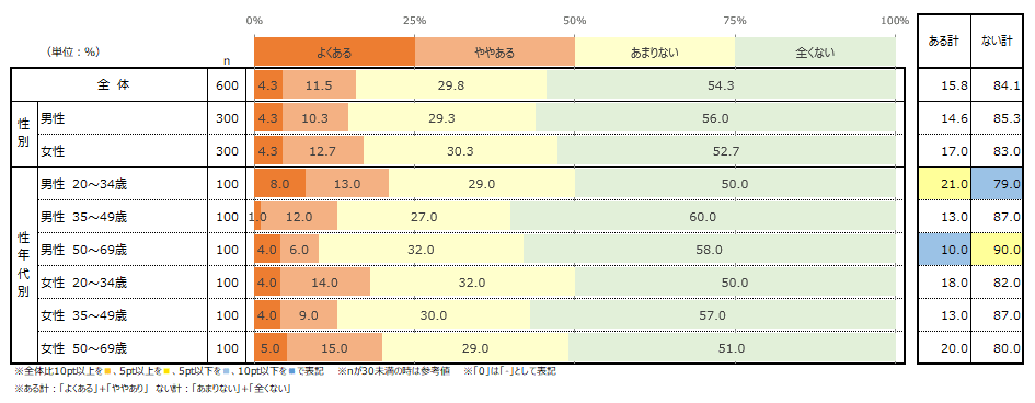 ※ある(計):「よくある」+「ややあり」 ない(計):「あまりない」+「全くない」