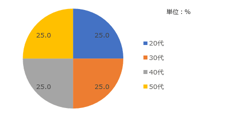 | 割付 | 【性別】男性:50.0%、女性:50.0% 【年代】20代:25.0%、30代:25.0%、40代:25.0%、50代:25.0% |
