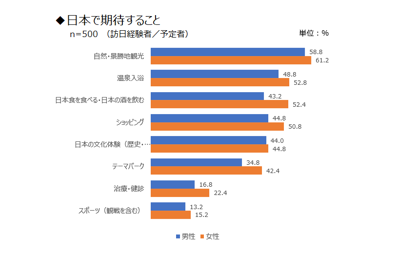 日本に期待することは、観光と温泉、訪日予定者の旅行計画は女性主導!?興味軸が多岐にわたる