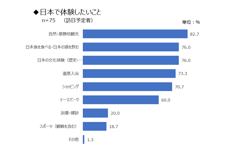 Q.今後、日本を訪問予定の方におうかがいします。あなたは日本で何をして過ごしたいと思いますか。あてはまるものをすべてお答えください。(複数選択可)