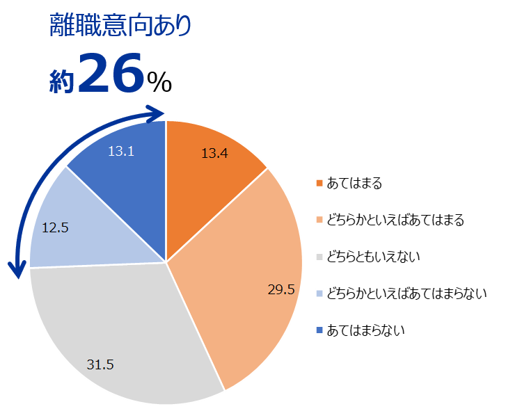 全体の離職意向は25.6%で、 約4人に1人が離職意向を持っているという結果であった。