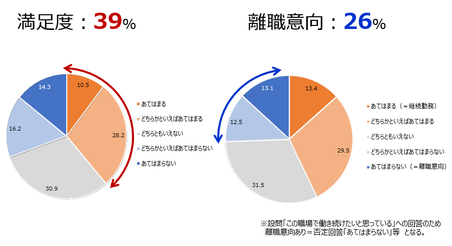 満足度と離職意向、専門職 OR ブルーカラーで大きな開きありとの結果に