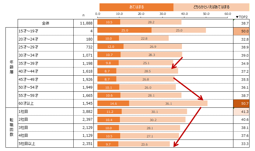1万人データから探る、社員の離職要因とエンゲージメント(愛着心・思い入れ)に関する分析レポート第三弾 【転職回数別編】