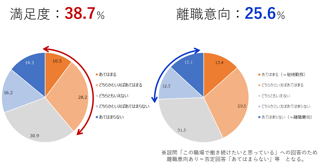 職場への満足度は4割弱で、4人に1人が離職意向あり