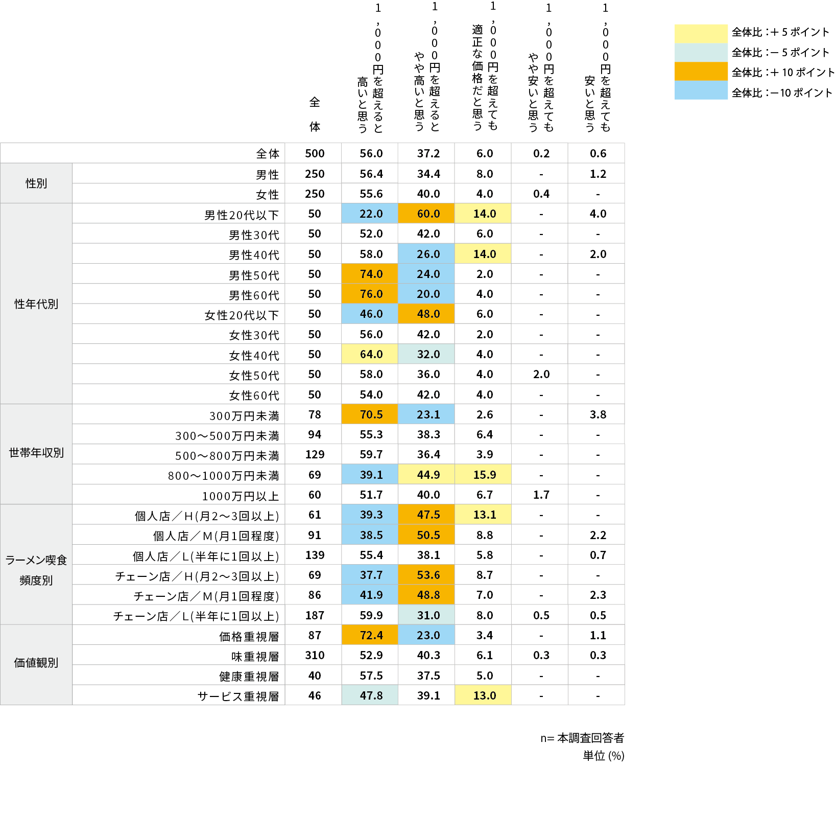 「ラーメン」は、まだまだ庶民的な食べ物として認識されており、1,000円を超えることに対して、抵抗を感じている人が多い