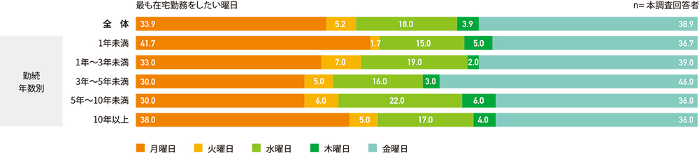 在宅勤務をしたい、金曜日・月曜日・水曜日の順で多い