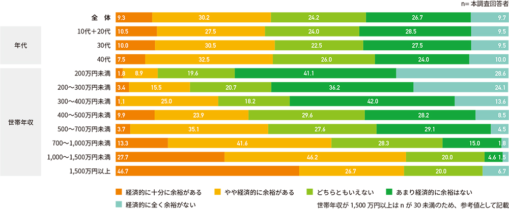 - 世帯年収が400万円未満は、経済的な余裕がない傾向