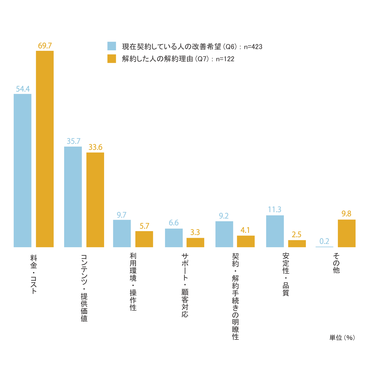- 解約理由として「料金・コスト」を挙げた人は約7割