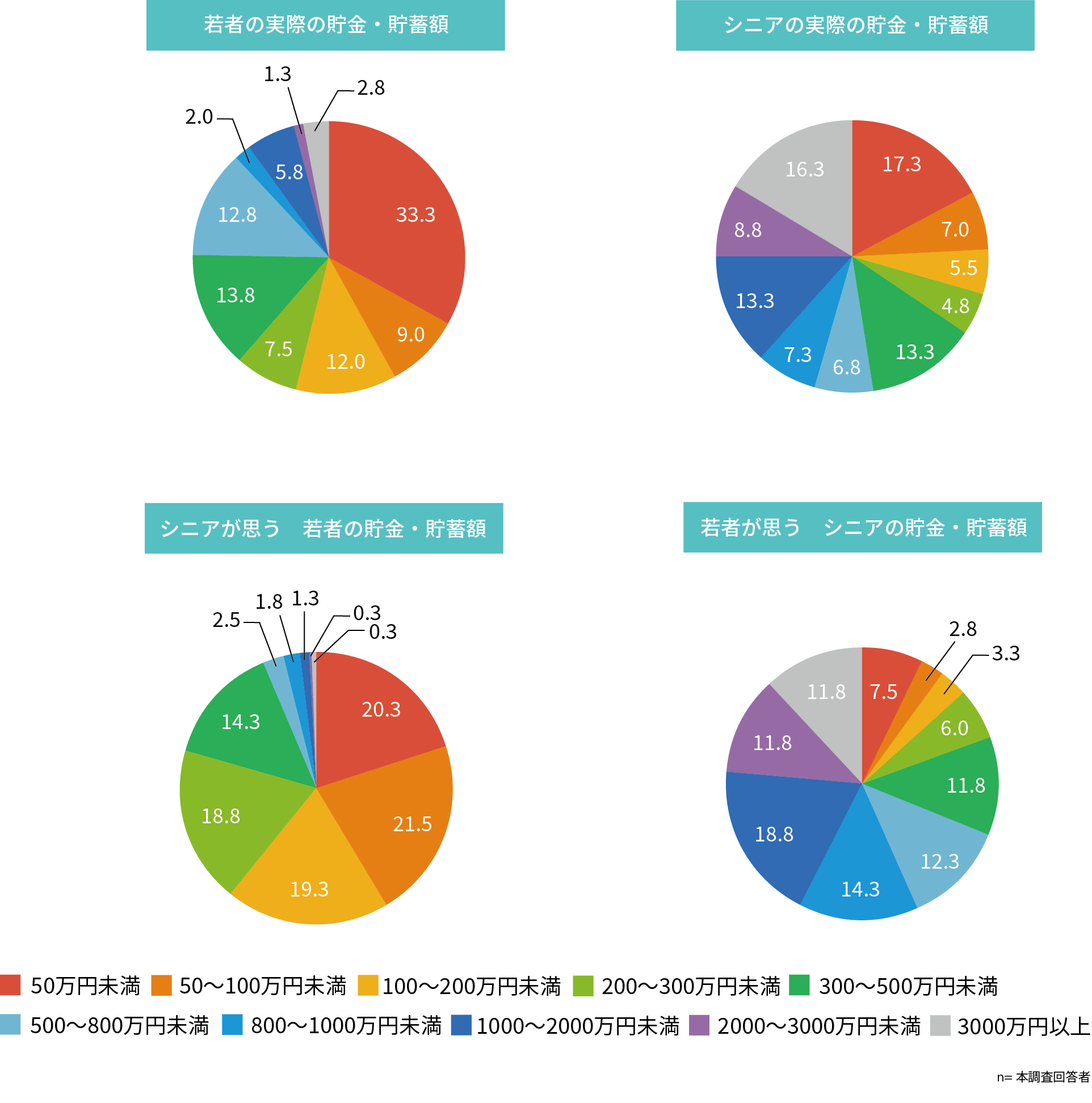 - 若者、シニア共に貯金・貯蓄額は「50万円未満」が1位
