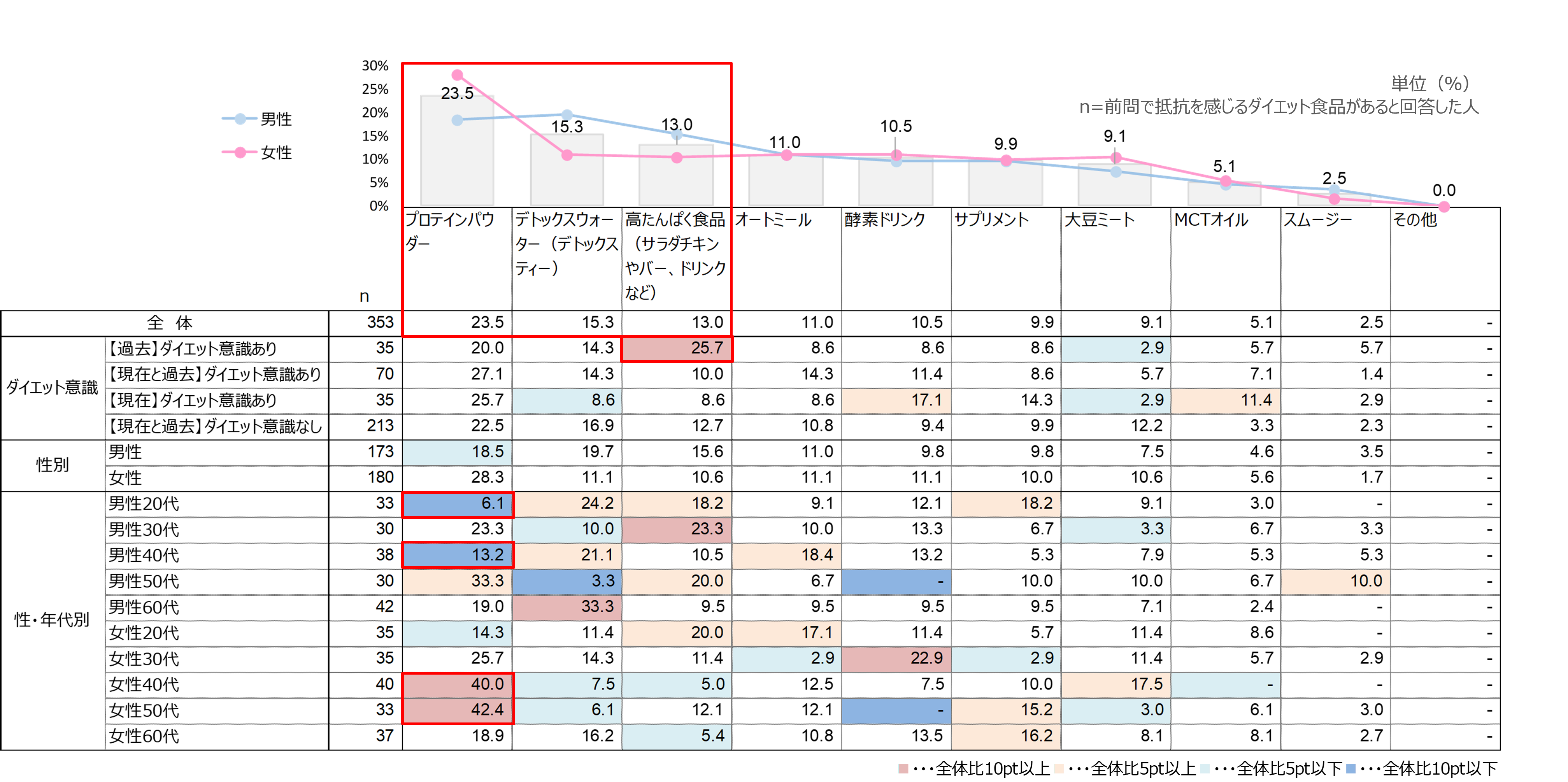 - 抵抗を感じるダイエット食品は「プロテインパウダー」が3割半ばと最も高い