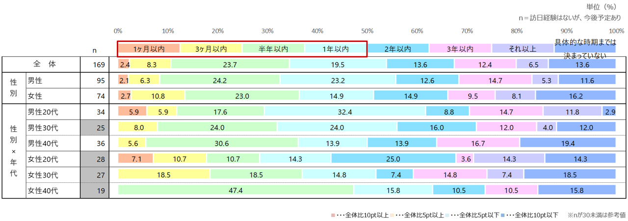 - 日本に来たことがない未訪問者の5割半ばが、1年以内の訪日を予定している