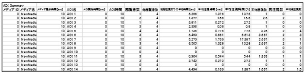 任意に設定した領域に対して、視線がその領域に入った時間と回数を算出し、興味や関心のある領域がどの程度注視されたかを知ることができます。