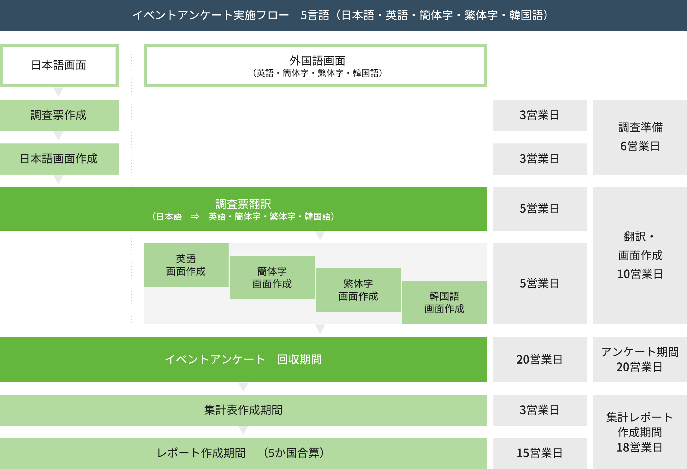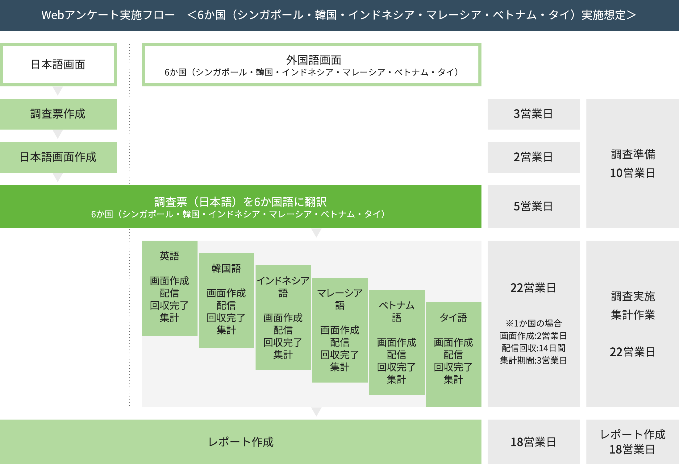| 集計翻訳費用 | ¥150,000 | 日本語→英語→現地語 |