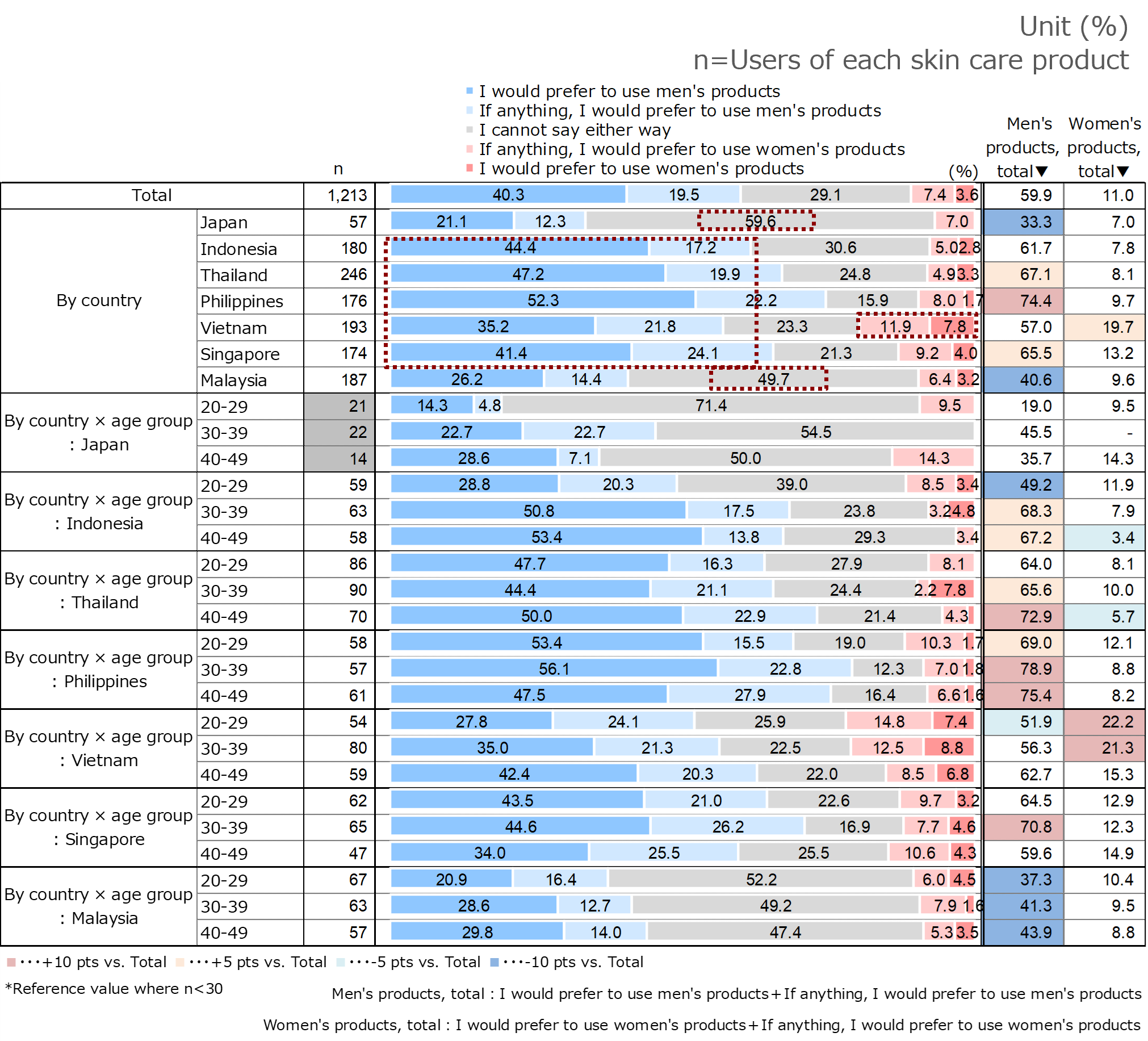 • In Japan, many men have no preference between men’s and women’s skin care products; however, in Thailand, there is demand for men’s skin care products.