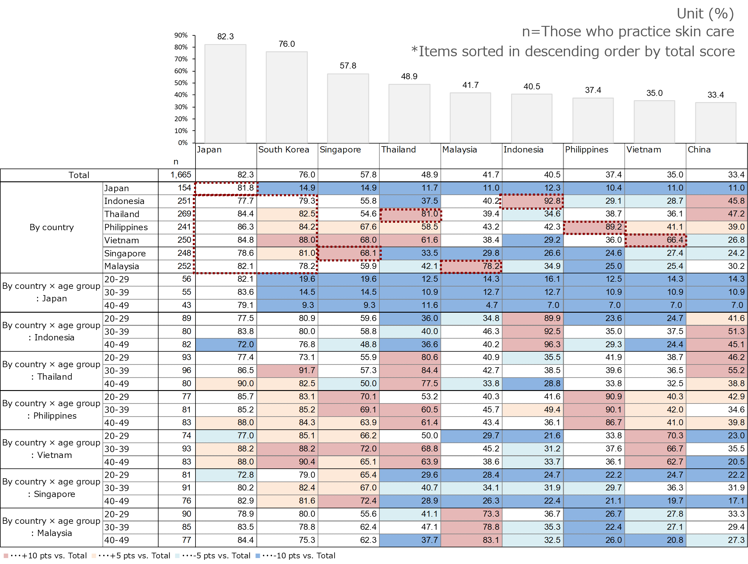 • In Japan, there is little use of skin care products other than by some men who are using toner; however, in Thailand, there is high use of a wide variety of skin care items and cream in particular.