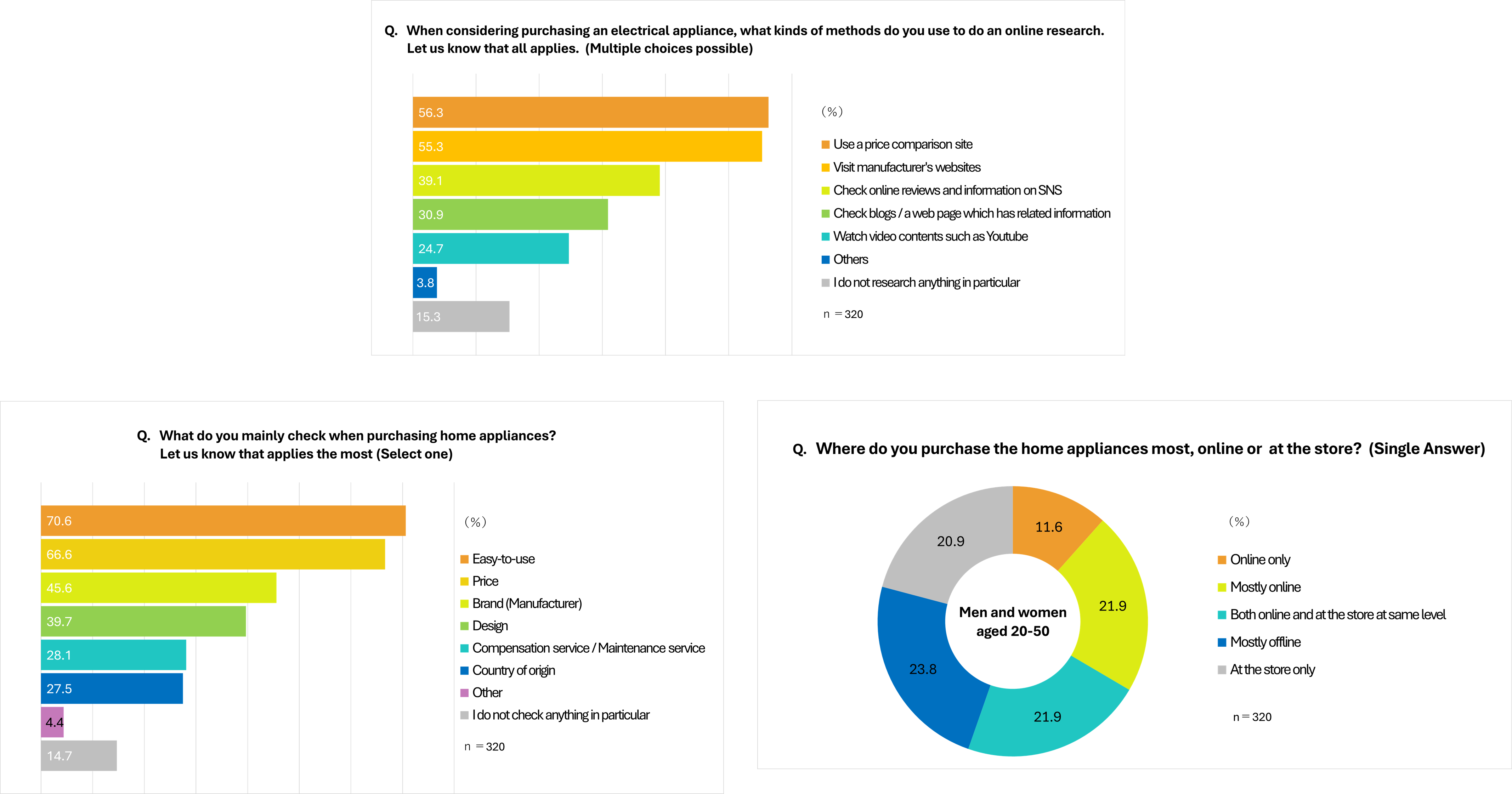 Also, when we did a research on what they check when purchasing home appliances, “easy-to-use” was selected by the largest number of respondents (70%), followed by “price” (67%), and “brand (Manufacturer)” (45%).