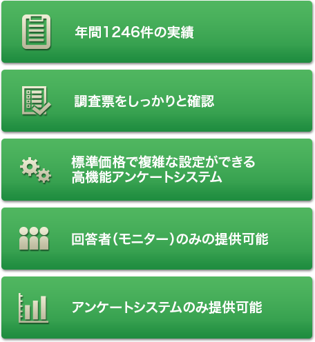 - (※1)お客様でご用意された調査票でも構いません。オプションにて、調査票のアドバイスやリライトもお受け可能です。
