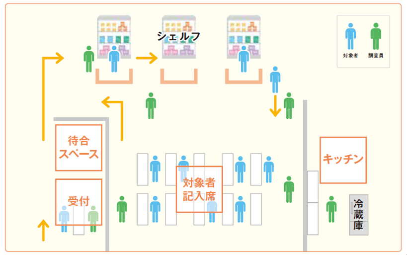 など、起こり得る様々な状況を想定します。試飲・試食の調査では、当日使用している紙皿や紙コップが足りなくなるといったことがよく起きます。