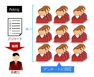 調査主体が考えた質問票から、生活者の考えを導き出し、数値化した定量データを分析する。
