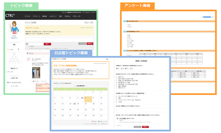 トピックタイトルや質問内容を調査的な聞き方にはせず、「○○情報室」や「今どきママは□□がご不満?」というような、対象者同士が自由に会話を楽しめるように設定。 本来想定していた回答とは異なる内容で会話が弾み、結果的にこれまで気付く事の出来なかったインサイトを発見する事ができた。