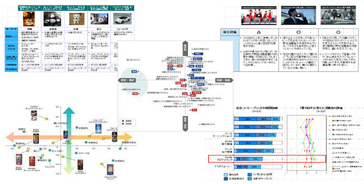 CM放映前、放映中、放映後と3つのセグメントに分けて行動と意識変化を観察した。また、トピックの中に様々な問いかけを用意し、対象者のコメントをシングルソースデータから分析する事により、意識変化のポイントを把握する事が出来た。定点的な定量アンケートも実施しバックデータとして活用した。