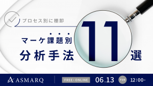 株式会社アスマーク(東京都渋谷区東、代表取締役:町田正一)は、2023年6月13日(火)12:00にマーケティングフェーズに応じた「マーケ課題」と「リサーチ」をテーマとした、リサーチャーによる事例解説セミナーを開催いたします。