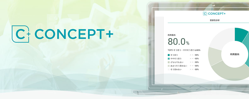 「CONCEPT+(コンセプトプラス)」は、コンセプト受容性調査を、より早く、そして低コストで実施していただくために開発した、セルフ型の調査サービスです。