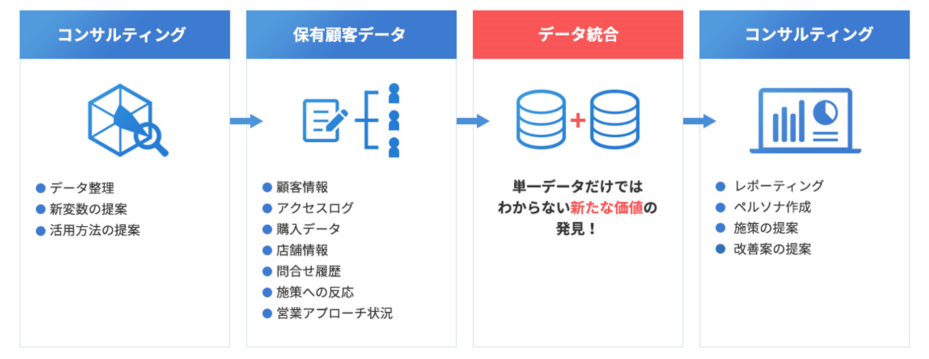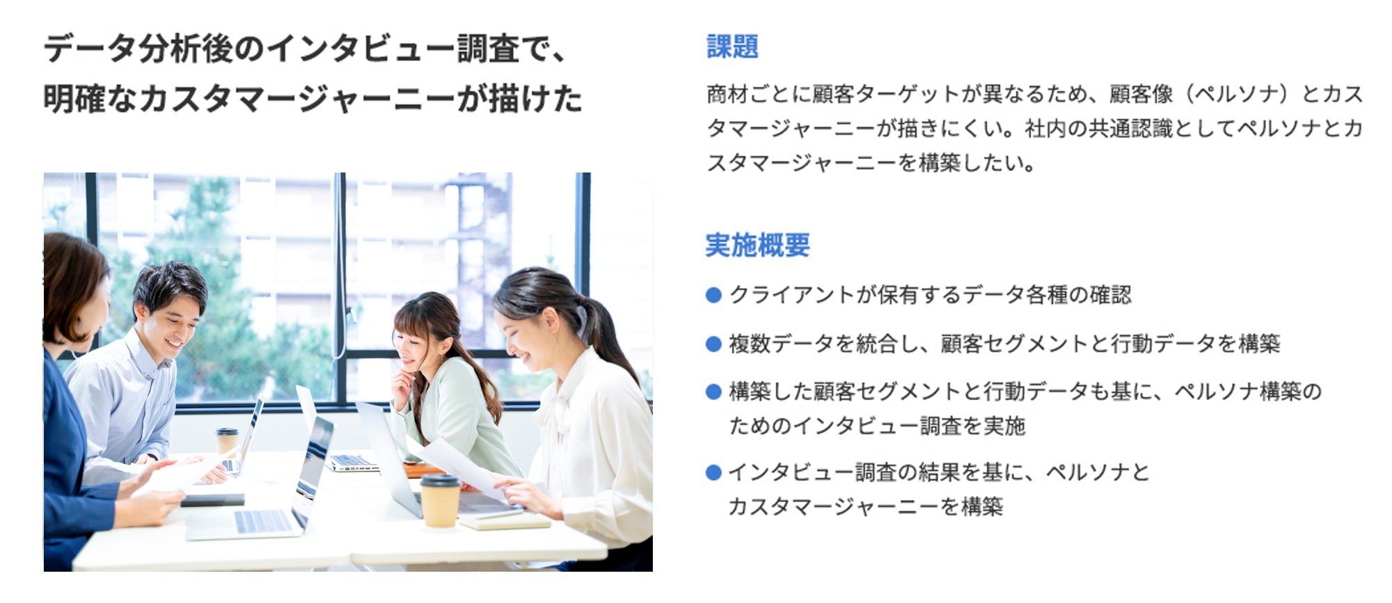 ・データ統合・分析前後の企画、仮説設定、実行まで一気通貫で伴走