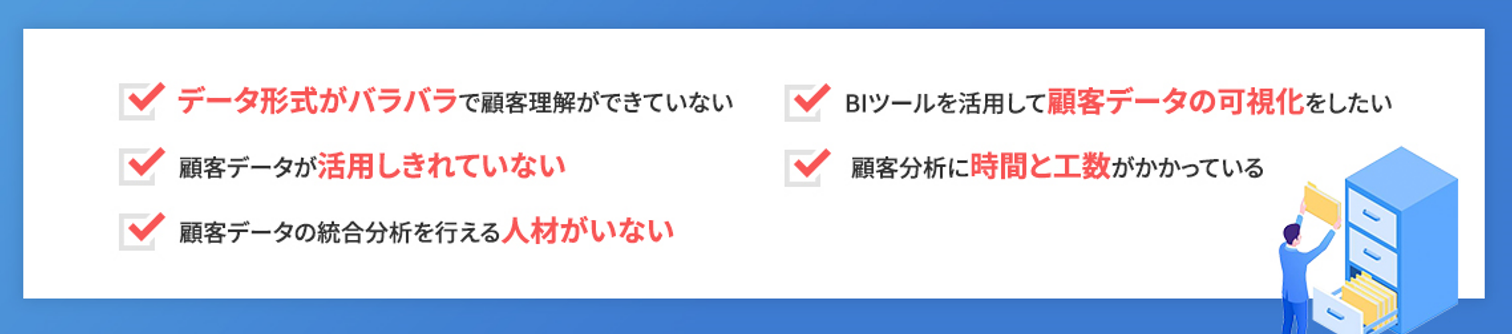 ・データ形式がバラバラで統合処理した顧客理解ができていない