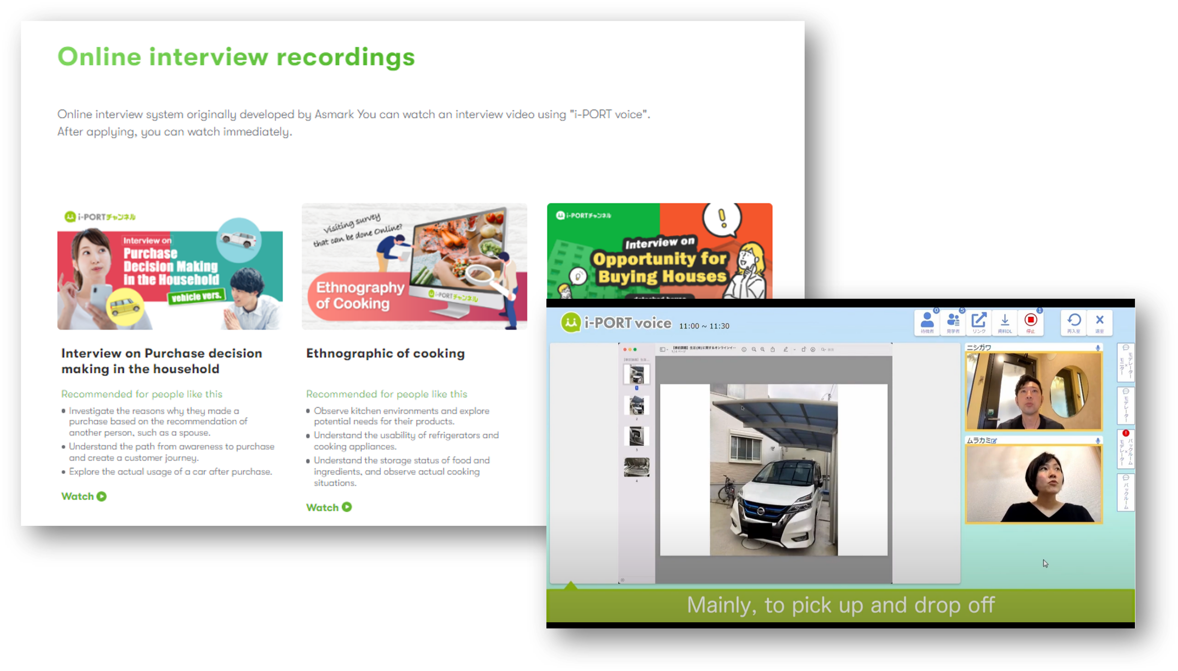 今回新たに、国内の自社モニターへ独自開発のオンラインインタビューシステム「i-PORT voice」を用いて行った、定性インタビュー動画を英語版にて各種公開しています。公開する定性インタビューは、デプスインタビューによるエスノグラフィ(行動観察)調査を中心に、定性的観点でのインサイト抽出にお役立て頂けるシリーズで主に構成されています。コンテンツは随時公開予定!今後はグループインタビューやZ世代を中心に行うインタビューもお届けしていきます。