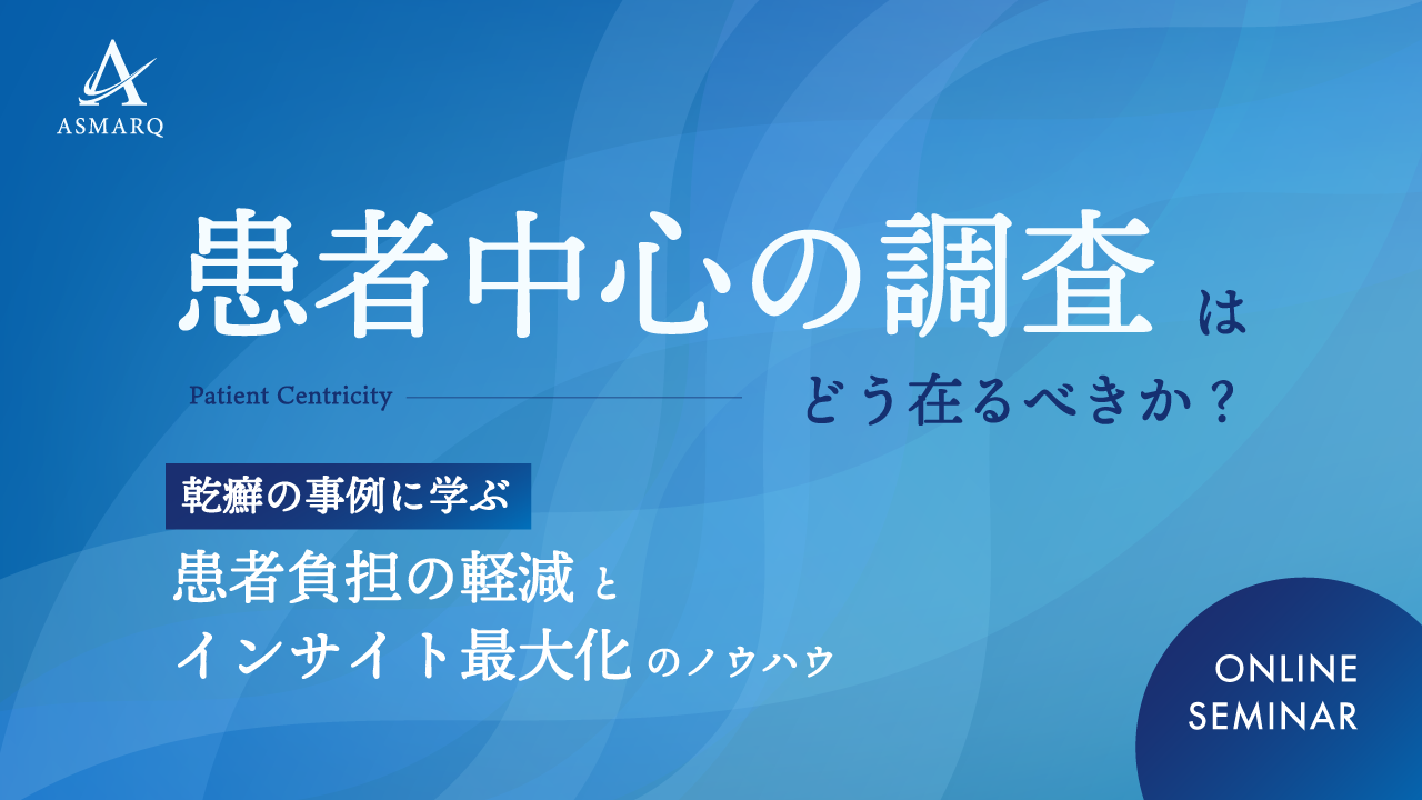 株式会社アスマーク(東京都渋谷区東、代表取締役:町田正一)は、2026年3月18日(水)13:00に、「難病・希少疾患患者を対象とした調査」をテーマに、ペイシェント・セントリティを意識した調査設計のポイントを、乾癬性関節炎の患者さんの事例を交えて解説するセミナーをご案内いたします。
