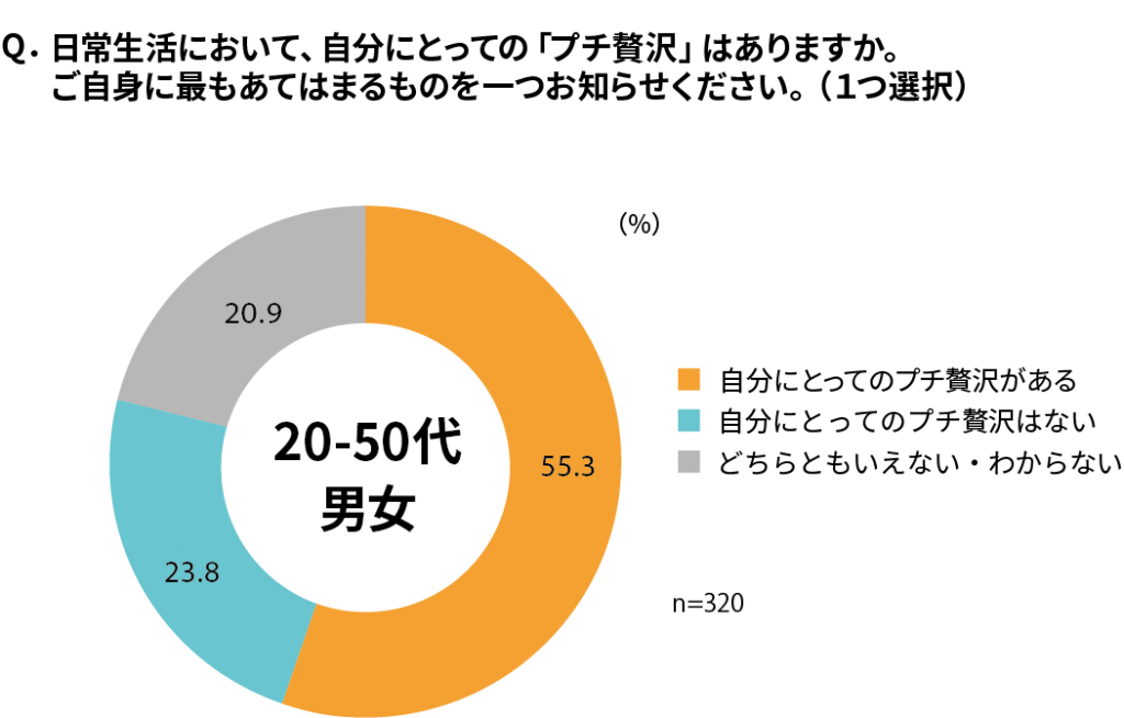 「プチ贅沢」とはいつもより”少しだけ”奮発した、モノの購入や体験行動によりちょっとした贅沢感を得ることです。物価高も続く昨今、日々のストレス解消や生活の質の向上など様々な効果が期待され話題になっていますね。