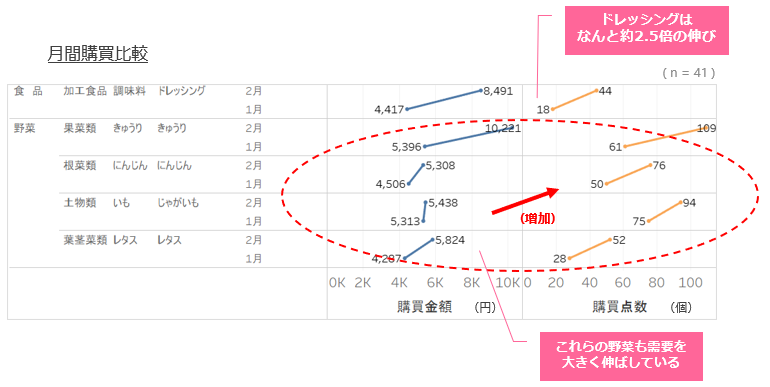 意外な消費増の筆頭として、「ドレッシング」の顕著な増加が確認された。