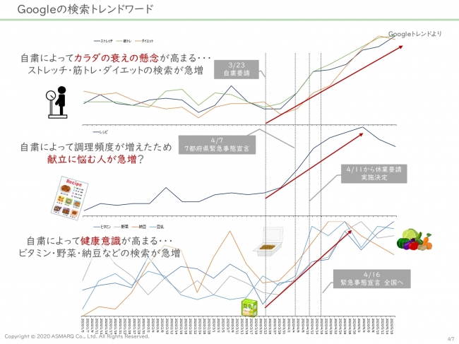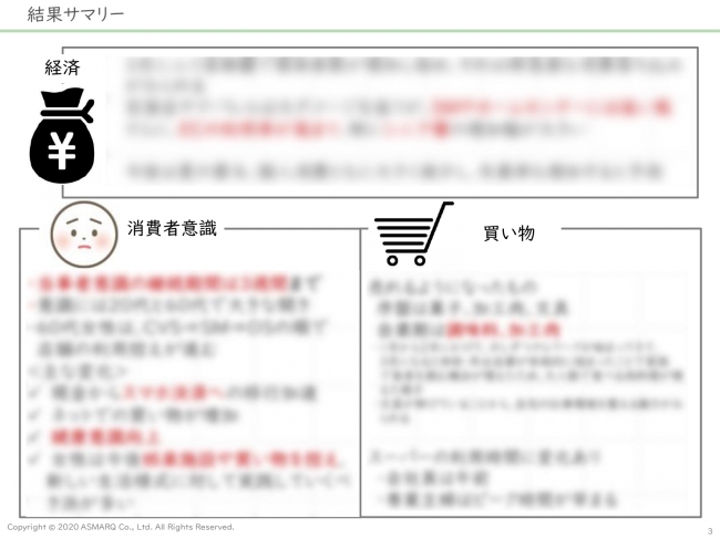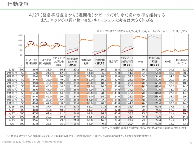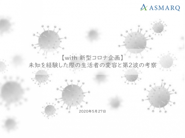株式会社アスマークでは、消費者から直接集めたレシート情報を用いた「実購買データ」と、週3回実施している「コロナウイルスに関する調査レポート」と、「社会情勢のトピックス」をまとめ、新型コロナウイルスによる生活者の第1波の動きから第2波の動きを考察する調査レポートを5月27日(水)に公開しました。
