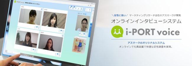 ”i-PORT voice”とは、新型コロナ禍以降で300件以上のオンライン定性調査の実績を誇るアスマークが、実務経験を活かし開発したオンラインインタビューシステムです。