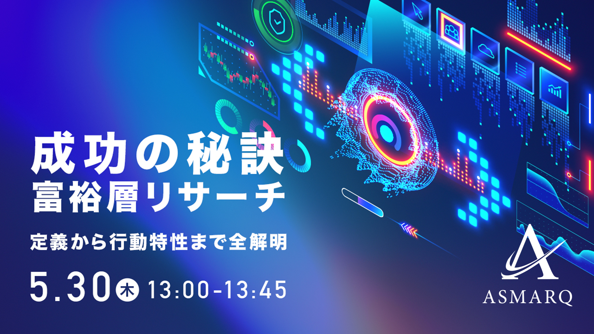 株式会社アスマーク(東京都渋谷区東、代表取締役:町田正一)は、2024年5月30日(木)13:00に、富裕層を対象としたマーケティング活動に役立つ、調査設計における消費者セグメントの最適解について、プロの見解を基にセミナー解説いたします。