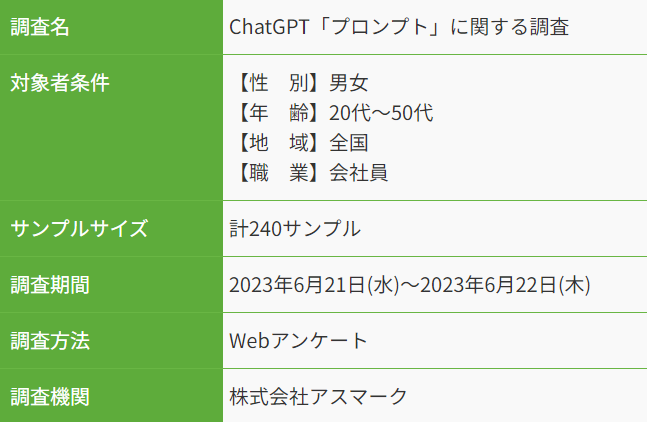 今回は会社員を対象に、前回のSmart researchに引き続き「ChatGPT」に関する調査を実施。話題の「プロンプト」について焦点を当て調査しました。