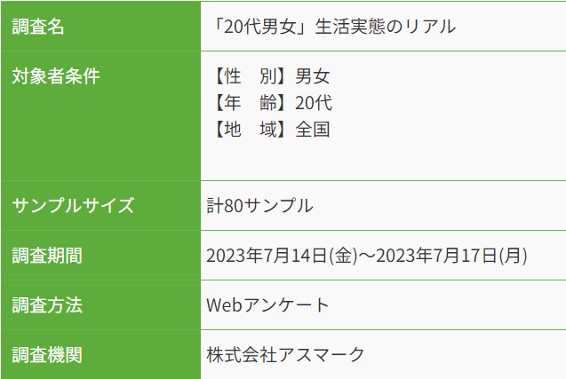 日常のちょっとした疑問を独自のミニリサーチ形式にて発信していく「Smart research」 今回は、20代男女の「生活実態のリアル」に着目し、現代の若者ならではの実態や意識を調査しています。