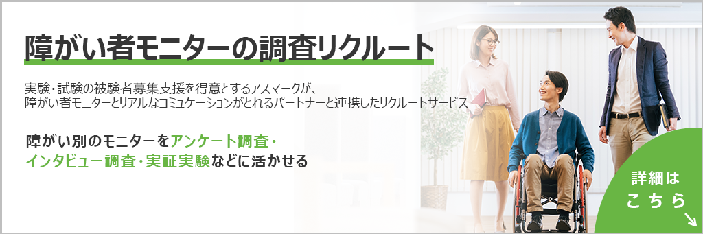 当社では、障がい者モニターの調査リクルートサービスを提供しています。