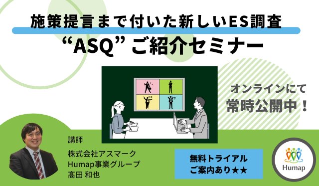 アスマークが提供する従業員満足度調査「ASQ」のご紹介セミナーです。