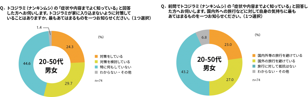 また、認知者の内約2割は「トコジラミ(ナンキンムシ)」について「対策をしている」一方で、約半数は「対策をしていない」と回答しています。