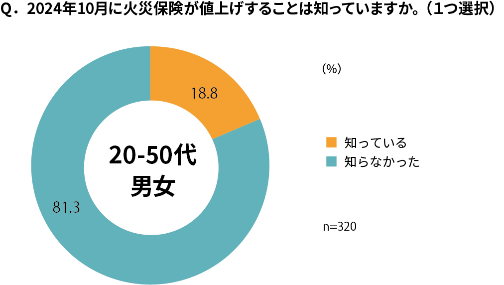 まず、火災保険料改定に関する認知度について6月にアンケート調査を実施したところ、約8割の方が「知らない」と回答しました。