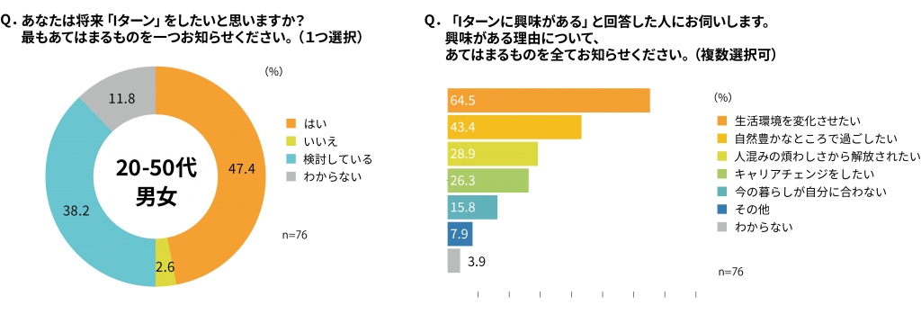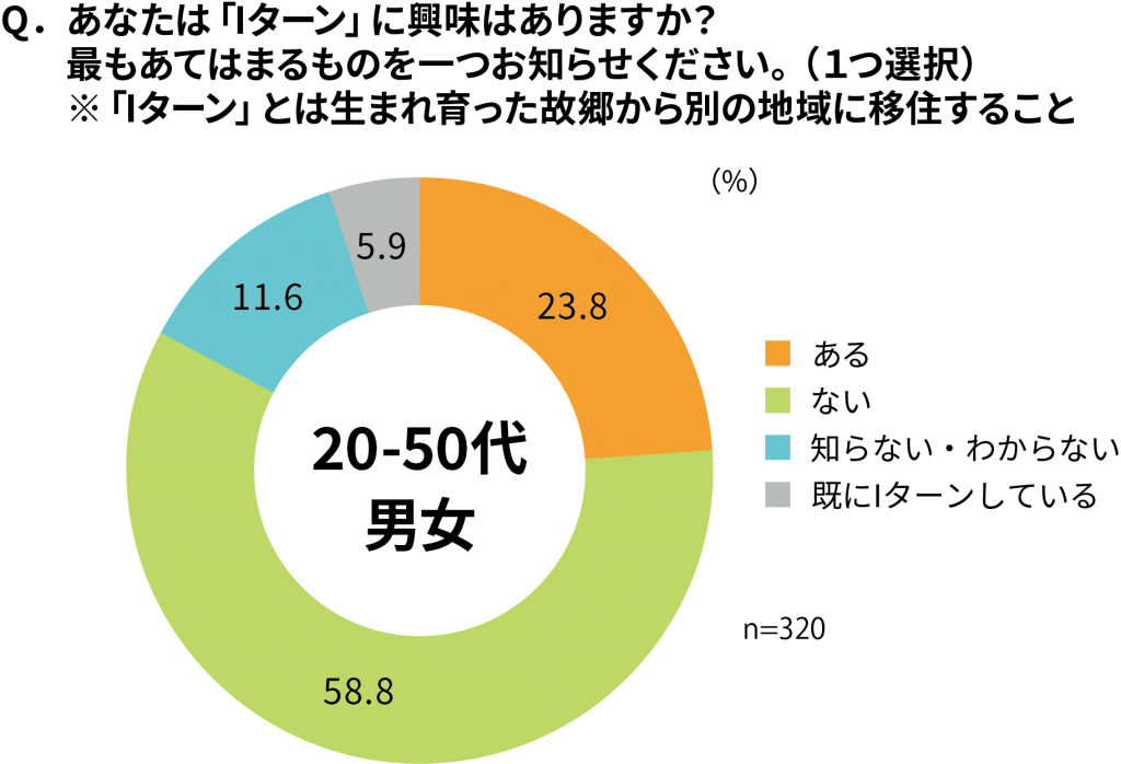 まずは、約30%の人がIターンに興味がある、または既にIターンをしていると回答しました。